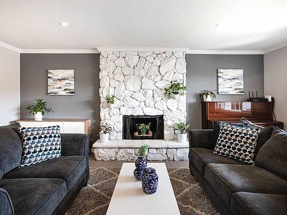 Wood-burning fireplaceTurf grassGenerous cabinetsFormal dining areaBar seatingModern stainless steel appliancesTrendy light fixtures