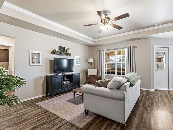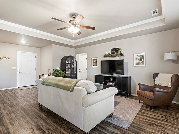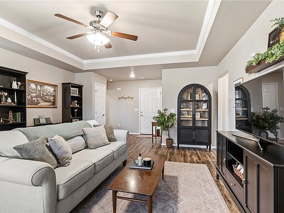 RD Financing available! All-brick home with minimal exterior maintenance requirements. 3 bedrooms, 2 baths, 1490sf. Open floor plan. Adorable entry leading into the spacious living area where you'll find a tray ceiling before entering the eat-in kitchen. Kitchen island gives additional counter space for prepping dinner, along with added storage. Granite counters, pantry, SS Dishwasher, Glass top stove, microvent. Primary suite with double sinks, jetted tub/shower combo, and huge walk-in closet. The split floor plan features guest rooms located on the opposite side of the house. Step-in and walk-in closets in the guest rooms. Covered back deck, perfect for enjoying morning coffee. Privacy fenced backyard and 2-car garage. Less than 15 minutes to XNA airport!
