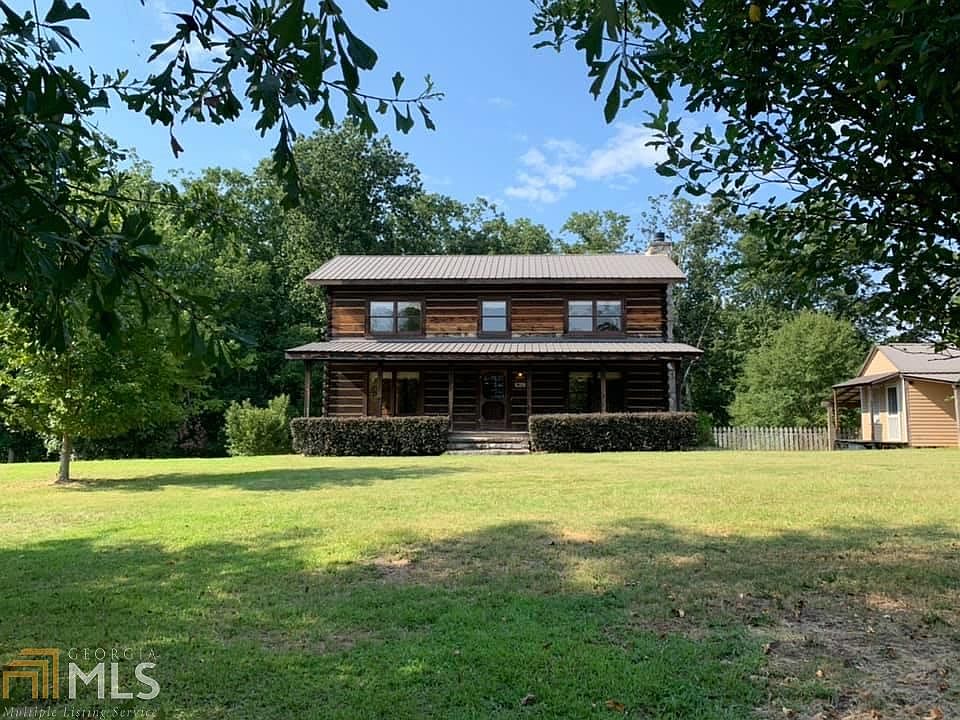 This Beautiful Log Home is quietly nestled on 9.22 private acres w/ fig trees, apple & pear trees, muscadine, blueberry & blackberry vines & space for gardening too! Nature lovers will adore this rustic home with all the modern comforts but the feel of simpler times! Double tongue & groove log craftsmanship, stunning pine flooring throughout, granite rock accents include fireplace and steps around the home! The kitchen will take you back in time! I absolutely love it & can vision family sitting in this kitchen snapping beans together, doing crafts with each other and most of all having a family meal together. Another great feature is the sun room and the 12x14 office space detached from the house! This sweet loving home is awaiting her new family!