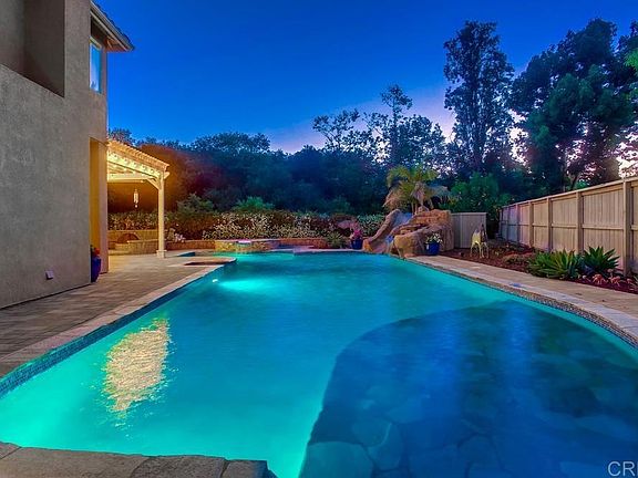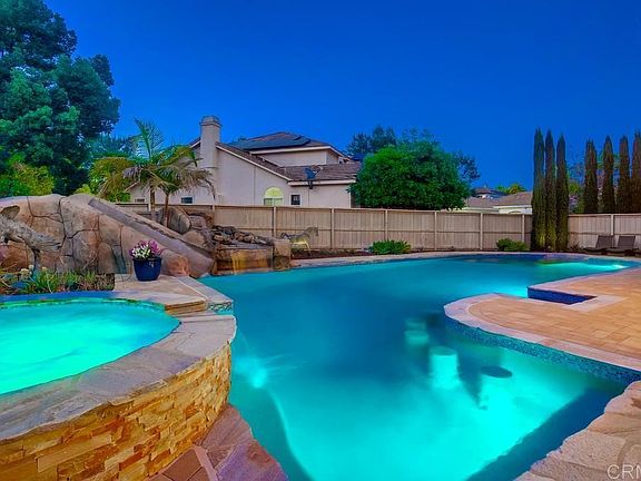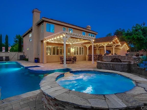Wow! Don't miss out on having the nicest and most exceptional backyard and private paradise! This entertainment gem located in the gated community of Peppertree Park. This oasis boasts an entertaining backyard where no expense was spared, pristine curb appeal, and 10 kW of fully owned solar! Watch the videos online... Nestled on an unusually large lot, situated on a compact cul-de-sac with no rear neighbors and the 46-acre Los Jilgueros Preserve just a short 4-minute walk away. Escape to your own retreat-like living environment with this spectacular entertainer’s dream. The backyard features a custom-built over 30,000-gallon sparkling saltwater pool with beach entry, waterfall, exhilarating water slide, swim-up bar seating, mesmerizing color-changing lights, and a soothing hot tub. Relax under the pergola or entertain in the outdoor kitchen, fully equipped with a built-in Delta Heat grill, Green Egg smoker, refrigerator, sink, built-in beverage cooler, electric heater, ceiling fan, TV, surround sound system including Denon controller and Yamaha speakers, and wrap-around bar with granite countertops highlighted by string lighting. Adjacent to this culinary haven is a cozy fire pit and a 4-hole putting green, perfect for gatherings or a quiet evening under the stars. The backyard also features lemon, grapefruit, orange, and lime trees. Step through the dynamic front entry and be greeted by a spacious den/office with leaded glass doors and a centerpiece fireplace, setting the tone for the home's elegance and functionality. The main floor features natural travertine tile laid in the Versailles pattern, and a bedroom with direct access to a full bathroom, perfect for guests or multigenerational living. The formal dining room, connected to the kitchen via the butler’s pantry with a built-in wine rack, enhances the home's luxurious feel. Plantation shutters adorn most windows and dining room doors. The updated kitchen exudes opulence with its custom granite countertop center island and bar seating, equipped with stainless steel appliances, adding to the kitchen’s appeal. A spacious in-kitchen casual dining area is framed by a wall of windows with picturesque views of the breathtaking back yard. It opens seamlessly to the inviting family room, creating a perfect flow for entertaining and everyday living. Ascend to the upper level to find a tranquil retreat away from the hustle and bustle of daily life. The primary suite welcomes you with double entry doors and offers you a sitting room with fireplace, features an ensuite bathroom with a soaking tub, freestanding shower, dual sinks, and a spacious walk-in closet. Two additional bedrooms, full bathroom, and a versatile loft complete the upper level, providing ample space for family and guests, while enjoying the comfortable climate provided by the newly upgraded heat pump installed in September 2022. The 3-car tandem garage offers ample space for your vehicles and storage needs, while the large porte-cochere driveway provides parking convenience. The house is equipped with a Culligan water purification and soft water system, a water heater installed in 2020. The property features water-saving succulents amidst mostly hardscape, and a flagpole adds a touch of elegance. Peppertree Park offers a 6-acre community park perfect for walks at all times of the days and includes a playground, basketball court, BBQ area with large grassy areas, picnic tables and sidewalks to stroll around the park. Meticulously maintained and upgraded, this exceptional home blends luxury, privacy, and entertainment. This property stands out as a true masterpiece where every day feels like a vacation in your own slice of paradise.