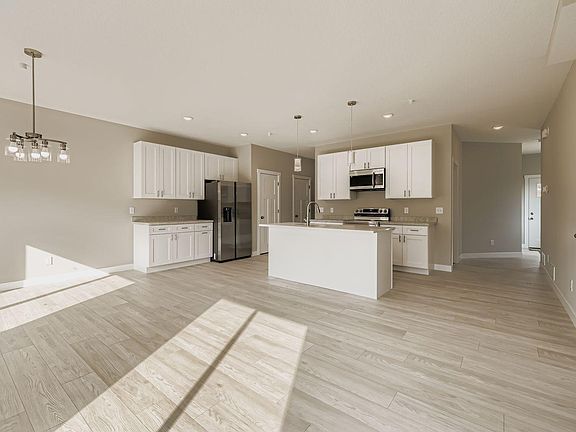 Welcome to 2121 Cleveland Way S – a brand-new construction townhome in the heart of Cambridge, offering modern comfort and low-maintenance living. This thoughtfully designed 3-bedroom, 3-bath home features a bright and open main floor with a stylish kitchen, complete with stainless steel appliances and sleek cabinetry. A convenient half bath is located just off the foyer, and the attached two-stall garage makes daily life seamless. Upstairs, all three bedrooms, the laundry room, and a versatile loft space are located on one level—perfect for easy living and privacy from the main floor. The spacious primary suite includes a private three-quarter bath with double sinks and a large walk-in closet, offering a quiet retreat at the end of the day. The two additional bedrooms share a full bath, and the loft is ideal for a home office, playroom, or second living area. With clean lines, modern finishes, and smart layout choices, this home is built for today’s lifestyle. Whether you're a first-time buyer, downsizing, or looking for an easy-to-maintain property, 2121 Cleveland Way S delivers comfort, functionality, and style—all wrapped up in new construction peace of mind. Don’t miss your chance to make this turnkey townhome your own. Builder will contribute up to $5,000 towards buyer's closing costs.