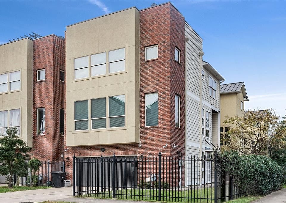 Welcome home! This Tricon Builder built home has features no other home will have in this price range! It just finished a complete face lift with fresh and trendy wall paint, base boards, and completely refinished in a grey hand scraped finish solid wood floors throughout. This free standing has no HOA, FULL SIZE private drive way, gated private fence with a recently built deck, and one of the LARGEST oversized 4th story deck with a full 360 degree view of Houston from Downtown to the Galleria is ready for you to move in! The garage has additional storage space that you will not commonly find. Every perk, every feature, everything thing you wanted in the city. Come and schedule a visit today! * NEVER FLOODED!