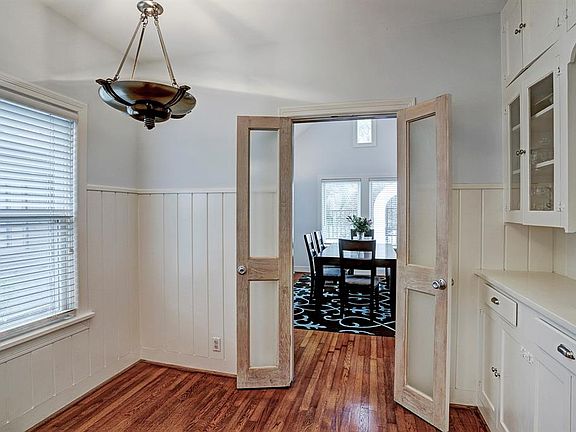 Adorable bungalow in Montrose/Upper Kirby area. Vaulted ceilings in living room and dining room make home feel very spacious. Dining room has built-in bookcases and updated fixture. Kitchen updated with granite counters and stainess appliances including gas stove and lots of storage. Charming breakfast area with built-ins adjacent to kitchen. Baths updated with modern fixtures and tile. Wood floors throughout. Front and back patios. Electric driveway gate. Windows replaced with low-E windows.