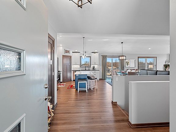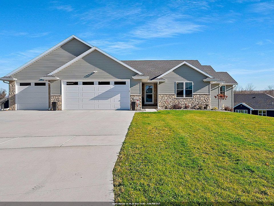 Better than new, this exquisite 1 year old 4-bedroom, 3-bath ranch blends elevated design with everyday comfort. Set on a quiet cul-de-sac, the home impresses with soaring windows, quartz countertops, and an open floor plan designed for both entertaining and retreat. Enjoy your morning coffee on the deck or the private pergola. Thoughtful upgrades include custom window treatments, landscaping with curbing, shelving, and a fully finished 3-car garage with service door, and more. Enhanced with a water softener, RO system, and AprilAir, every detail reflects quality. The lower-level walkout offers a second living space perfect for guests or multigenerational living. Move-in ready and refined, the essence of modern luxury living in a desirable location. Offers presented no sooner than 11/17.