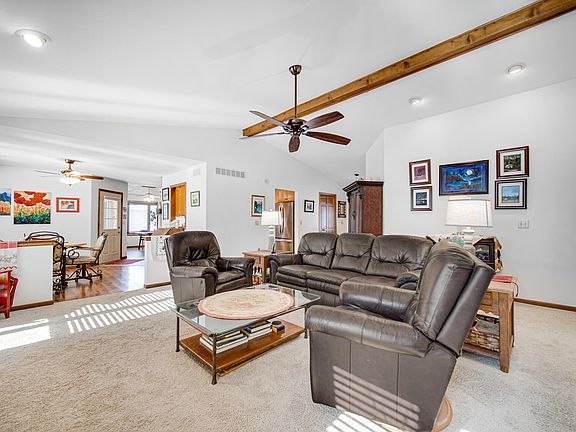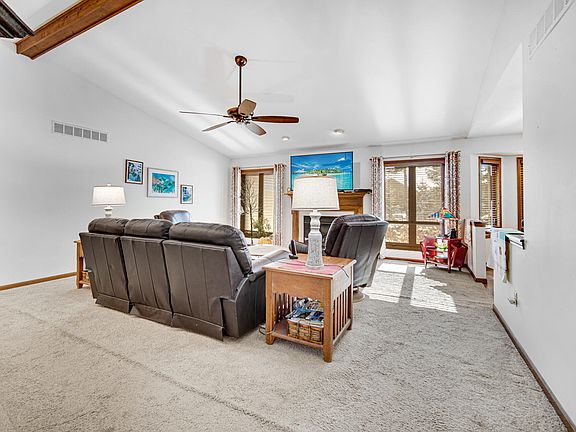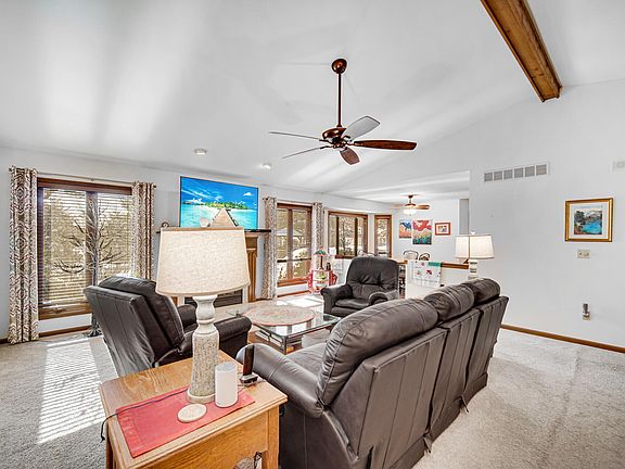 - Description: vaulted ceiling, gas log fireplace, wood accent beam