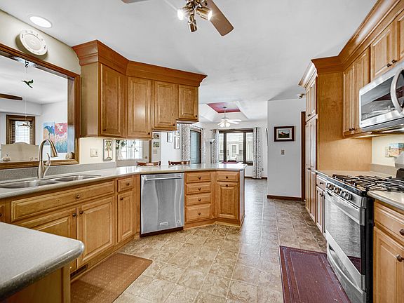 - Description: stainless steel appliances, Corian countertops, breakfast bar