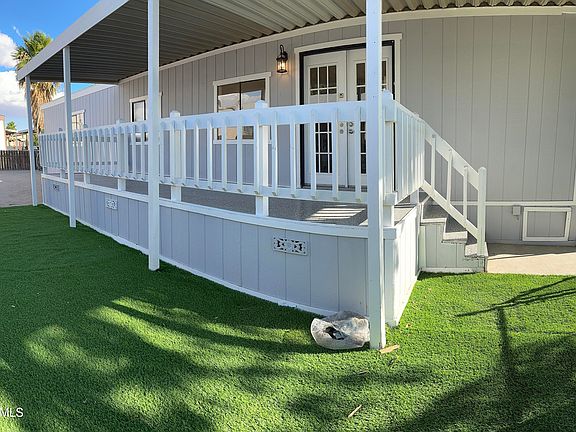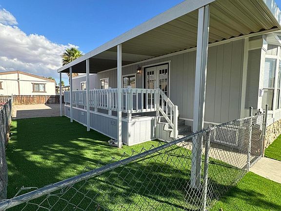 This fully remodeled 3-bedroom, 2-bathroom manufactured home showcases a fenced yard,