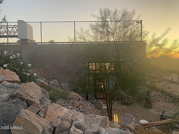 Completely rebuilt in 2022. AMAZING 360 VIEWS!! Wine Cellar built into mountain, Tennis /Basketball Court, Pool, A/C units on each floor, Entertainment Areas Inside and Outside, Game Room, separate Pool House/Exercise Room with shower (approx. 600 sq. ft.), 2 Bedroom Guest House (approx. 1,200 sq. ft.), 9 Levels above the street, Elevator, Dumb Waiter. Main Home approx. 5,600 sq. ft.) Unique and fantastic 360 degree over looking the city of phoenix. NO HOA