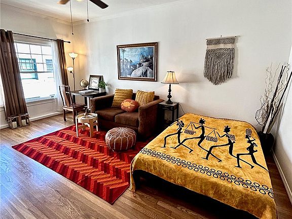 This charming pied-a-terre is in Historic building between Downtown LA and the Mid-Wilshire neighborhoods. The HOA Fee Includes Most Utilities - Electric, Gas, Water, Trash and WIFI in recreation room. It is one of the nicest units in the complex. It's on the fourth floor, very peaceful, very bright with 9 foot ceilings, completely remodeled along with lots of original details like French doors, crown moldings, hardwood floors, wooden doors and frames. It offers nice size bathroom with tub and new accessories, completely new private kitchen with stove, refrigerator, eating area, exposed brick wall, walk-in closet and storage space. Amenities include a recreational room, billiards and ping-pong rooms, bike racks in the basement, laundry room and gym. It's within walking distance to Red Line Metro station, near FIDM, USC, Loyola Law School, LA Live and Staples Center. This is a perfect starter home or investment property. There are two third party parking lots available nearby: 726 S. Lake Street and 942 S. Alvarado St.