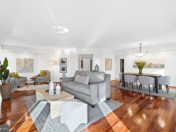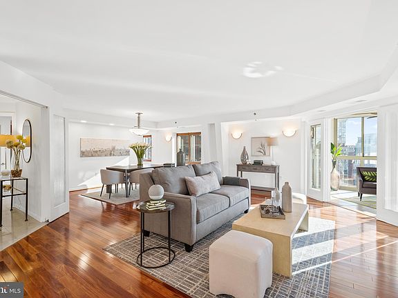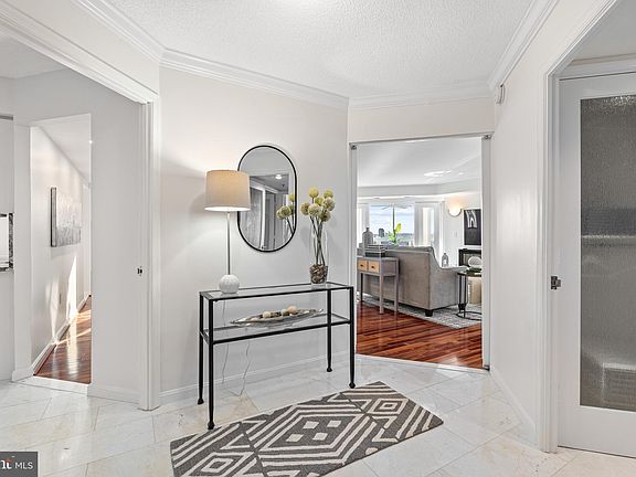 Welcome to your Oasis in the Sky in the prestigious Carlyle Towers with this rarely available 16th floor 2 bedroom, 2 bath corner unit with glistening views of the Washington Monument, US Capitol, Masonic Temple and western exposure sunsets that rival any beach vacation! As if that wasn’t enough, this contemporary home has been completely reimagined with no detail overlooked, meticulously designed and modified, using the keen eye and expertise of an owner architect who worked to thoughtfully enhance natural light dispersion and energy consumption. For an example–solid wood frame doors with textured glass doors allow natural light to illuminate the space, while sound-deadening interior windows ensure silence from every direction. All windows have been upgraded with solar mylar film and interior insulated shades, which eliminate noise, provide privacy and energy efficiency for the entire home. In addition, reconfigurations have been made to the existing sprinkling system enhance safety and efficiency. Inside, this condo has been transformed to create a large contemporary space with a marble entry way leading to a mesmerizing open living space with Brazilian cherry wood floors, a 74" linear electric fireplace, Polk audio sound system and of course, windows and light in every direction. An enchanting sunroom beckons you and offers a breathtaking sensation as if you were floating above the skyline, an ideal spot to savor at sunset. In re imagining this space, interior walls have been removed (a bedroom can be added back in if one wishes) to achieve a seamless flow. All three bathrooms have been fully renovated with top of the line materials, custom cabinetry, LED lighting, marble sinks and Fresca Rain Shower body jet systems and Whitehaus assisted flush water saving units. The kitchen has been improved in stages over the years, with birds eye maple cabinets and more recently replaced stainless steel appliances and bespoke granite countertops and backsplash. Each of the two bedroom suites have been thoughtfully reimagined to create spaces that allow for luxurious living, optimal functionality and storage (don’t miss the custom shoe closet, built-in ironing station or the remote controlled room darkening shades!) and dedicated workstations that make the spaces both beautiful and functional. Rounding out this special home is a full-size laundry unit, ample storage throughout, and two premium parking spaces along with a double-size storage unit that conveys. Carlyle Towers offers resort-style living and at an incredible value, with around the clock front desk and concierge and is just moments to Old Town Alexandria, Whole Foods, and the new Wegmans. Entertaining opportunities are endless with amenities including an outdoor deck with BBQ grills and picnic tables, a huge 10-hole putting green, along with croquet and shuffleboard courts. After a long day, use the sauna, jacuzzi, or swimming pool to relax. Pets are welcome with a dedicated dog park on the property.
