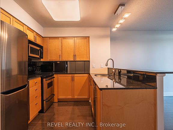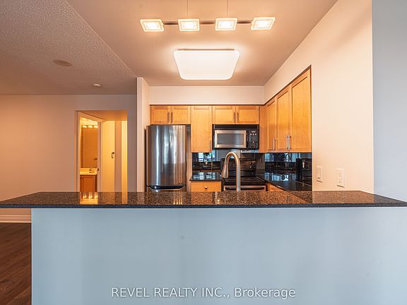 Welcome To This well-maintained 1-bedroom plus oversized den. This unit offers comfort, style, and convenience in one of Mimicos' most sought-after buildings. Featuring hardwood flooring throughout, a spacious open-concept kitchen with stainless steel appliances, granite countertops, and plenty of storage, this unit feels bright and inviting. The large den is perfect for a home office, guest room, or creative space. Enjoy a building that's known for exceptional property management, offering residents a clean and secure environment, as well as premium amenities including an indoor pool, guest suites, gym, and visitor parking. Located right on Lakeshore Blvd W, you're steps from Metro, Sobeys Urban Fresh, LCBO, cafes, and great dining options. Public transit is right at your doorstep with the Mimico GO Station, TTC streetcar, and multiple bus routes minutes away, and quick access to the Gardiner Expressway makes commuting to downtown a breeze (under 20 minutes!). Embrace the waterfront lifestyle with Humber Bay Park, scenic walking and cycling trails, and marinas just outside your door. All UTILITIES ARE INCLUDED in the rent, along with one underground parking spot.