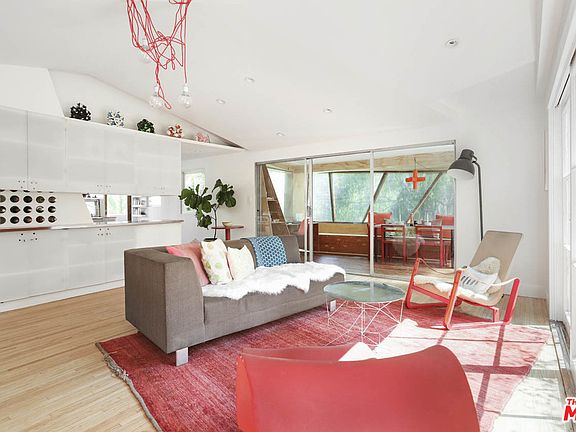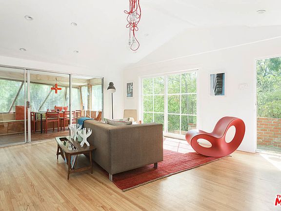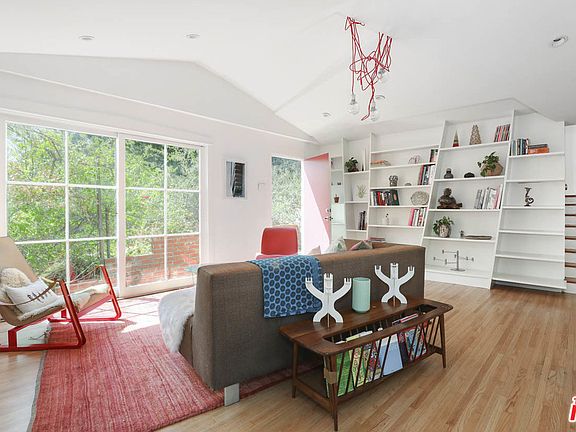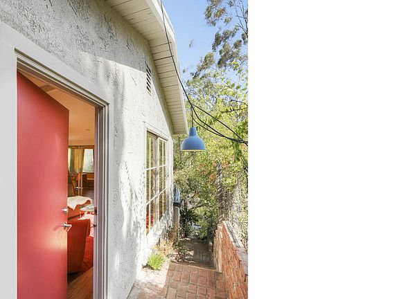 Perched above the street in the desirable Franklin Hills of Los Feliz, this artfully remodeled home is a harmony of inspiring design and connectivity to nature. The architect-owned bungalow of 1923 vintage has been modernized with avant-garde flair that includes exquisite custom crafted wood built-ins and a versatile layout for life/work balance amidst showers of sunlight. The unique and stylish kitchen features rubber flooring and stainless appliances including a pro-grade Viking range. Bedrooms enjoy treetop views; the updated bath has stone flooring, designer tile and a modular tub and sink made of wood. Lush outdoor spaces surround you in greenery, a private environment to relax and socialize with your own hot tub, tea house, rock climbing wall and winsome hillside views. Amenities include laundry, central air with Nest, and an ingenious pulley system to bring up your groceries. Markets, dining, takeout and coffee are nearby at Gelson's, Trader Joe's, Square One, Speranza and more.