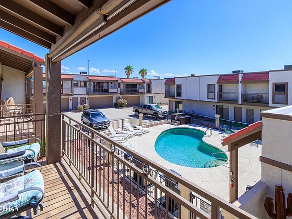 This beautiful two bedroom / two bath Condominium has an attached two car garage, a patio and two private decks. The patio and living room deck overlook the heated pool, hot tub, bbq grills, and the club house with views of the amazing Arizona sunsets. There is a bonus room that can function as family/game room or be used as an additional bedroom. This Condominium is perfectly located just walking distance from the heart of Lake Havasu shopping, restaurants, and entertainment while maintaining a quiet and tranquil community w/only 18 units. Great for full time residents, snowbirds, and has a good history of investment income.