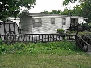14 x 16 Auburn mobile hm w/2 BR's, eat in kit w/newer counters, cabinets, refrig & range. Roof is 4 yrs old. lots of landscaping. 8 x 13 covered frt porch w/decking. Shed w/electric and work bench. Must be park approved.
