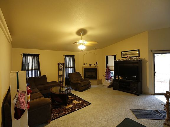 You will love this cute home in the desirable Ridgeview ranch neighborhood. Enter this home to find a large spacious living room with a beautiful fire place for cold Kingman winters. An open cozy kitchen with lots of kitchen cabinets with sight lines to the dining area. The house has 3 bedrooms and 2 full baths with a split floor plan. The large master bedroom has an en suit bathroom with walk in shower, separate bath tub, and duel sinks. In house large laundry room, two car garage , high block wall in the backyard to increase privacy allows you to enjoy the greenery including several large trees with an RV gate access and large storage shed to store all your yard and garden tools. Make an appointment today to see all this home has to offer and make it your HOME as it will not last too long.