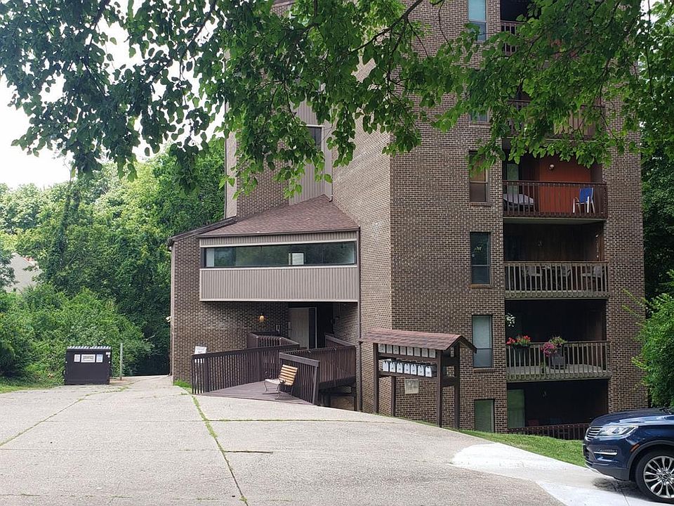 Location, Location, Location! 4th floor Woods Edge Condo overlooking Stanbury Park just a short walk from Mount Washington Business District! This open floor plan, 2 bedroom, 2 full bath unit has 2 balconies and a fireplace! Primary Bedroom has an attached bath along with a private balcony. Storage Closets on both balconies along with multiple closets throughout unit. No steps into the building with an elevator to the single level home. Don't wait!