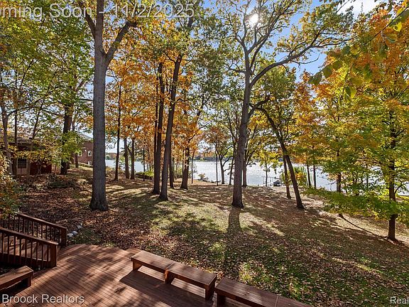Experience the feeling of Northern Michigan lake life, while being in the heart of West Bloomfield Township. Tucked among mature trees, Uplong is a quiet, dead-end street overlooking Upper Long Lake. This stone and cedar ranch, with a walkout lower level, is the second to last home at the end of the street. Offering the best of both worlds: spectacular, elevated views and a private dock on all-sports Upper Long Lake, without having to pay lakefront property taxes. This home has a one-thirteenth ownership in Outlot A, which has over 300’ of direct lake frontage. Solid wood front door flanked by sidelight windows and an arched transom window above. The great room, with a stone fireplace, is the focal point of the home. A soaring cathedral ceiling with exposed beam and an expansive wall of windows, showcases panoramic lake views. Adjacent dining area and kitchen completely open to each other. Granite kitchen featuring raised panel Maple cabinets. Bosch double oven, Thermador four burner gas range and new GE Monogram refrigerator (2024). Countertop seating & adjacent breakfast nook. Private deck off the primary suite, plantation shutters, large walk-in closet. New spa-like primary bathroom (2022) featuring euro glass shower & soaking tub. Second bedroom with lake views, full bathroom, a library/den and laundry room completes the entry level. Entertain off the lake in the walkout lower level. Second fireplace, large family room, wet bar, full bathroom & the third bedroom, currently used as an office. Two walls of floor to ceiling windows & doorwalls opens to the multi-tiered deck. Two car garage, plus an additional two car garage off the walkout, great for boat storage or take your golf cart down to the lake! Second laundry in the walkout. Home security system. Pella windows & doorwalls. Minutes from all the dining & shopping on Telegraph. Easy access to I-75. Thoughtfully designed to capture the best of Michigan lake living! Experience the tranquility of Upper Long Lake