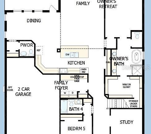 Large islandTwo-car garageTraditional exterior designFive bedroomsQuartz countertopsOpen floor planLarge open bonus retreat