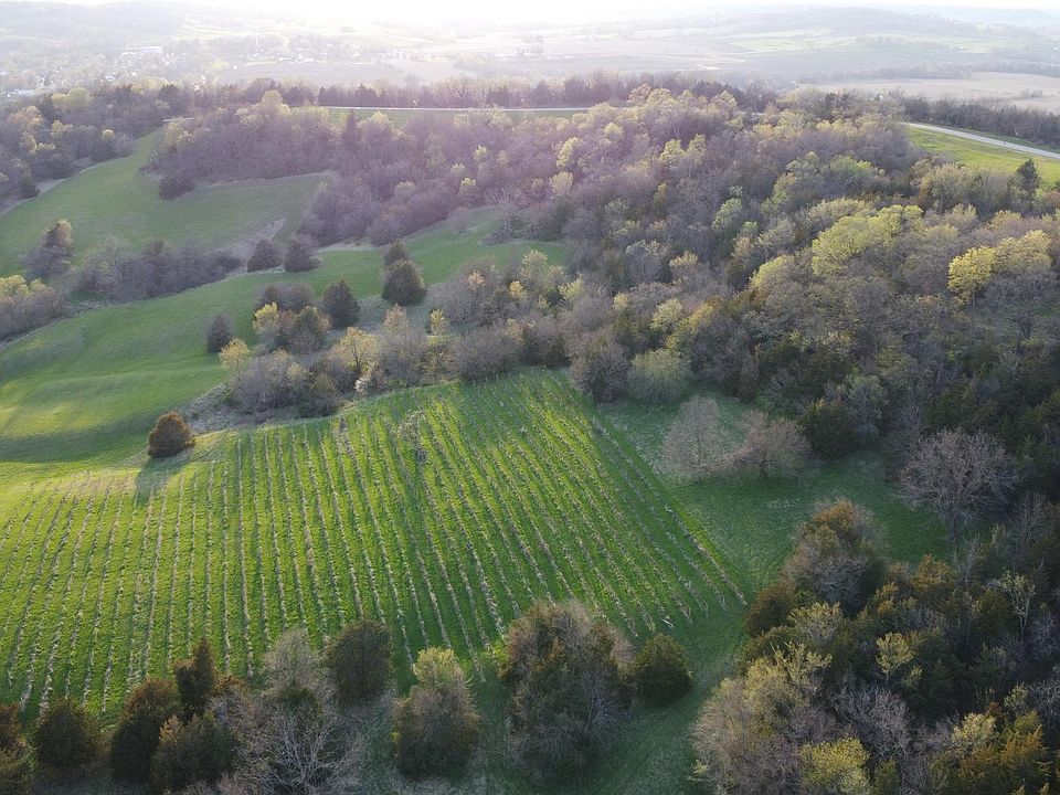 Breathtaking views, incredible hunting, and the potential for more development friendly zoning all packed into this 45.145 surveyed acre property that is a rare offering to own a vacant land portion of the beautiful Rocky Waters Vineyard and Winery. Located up on the bluff's just Northeast of Hanover, this property has access off a hard surfaced road and has wide open views of the southern sky that extend literally for miles out across the Apple River Valley and even across the Mississippi River valley and to the bluffs on the Iowa side of the river. Several potential homesites exist, including a prominent point along the western road frontage with perhaps the best views on the property. Get off the road a little further to the south/center of the property and you'll find a more private setting protected by the bluff but still sitting high enough to capture the views to the south. An old rock quarry protrudes into the bluff and is an extremely neat feature of the property, and even has an existing 48 X 38 pole frame building built inside the quarry with tall overhead doors and generator power. This property is part of the Village of Hanover city limits, which means the potential for a more development friendly zoning-think mini cabin short term rentals, glamping retreat, multiple home family compound, and more! Located just a short drive from Galena, the development potential is only limited by ones imagination! Not interested in developing? This property is located in one of the best hunting neighborhoods in Jo Daviess County and is LOADED with whitetail deer and other game. Much of the property is cut and baled for hay to keep the property nicely manicured, but could be a blank canvas for food plots, habitat development. Large food plots on the south end of the property would be incredible hunting as deer funnel out of the south facing cedar thickets on this property and towards the large AG fields to the south. This is a property with too much potential to describe and seeing it firsthand is the only way to appreciate the beauty and unique opportunity being offered. Schedule a private viewing today!