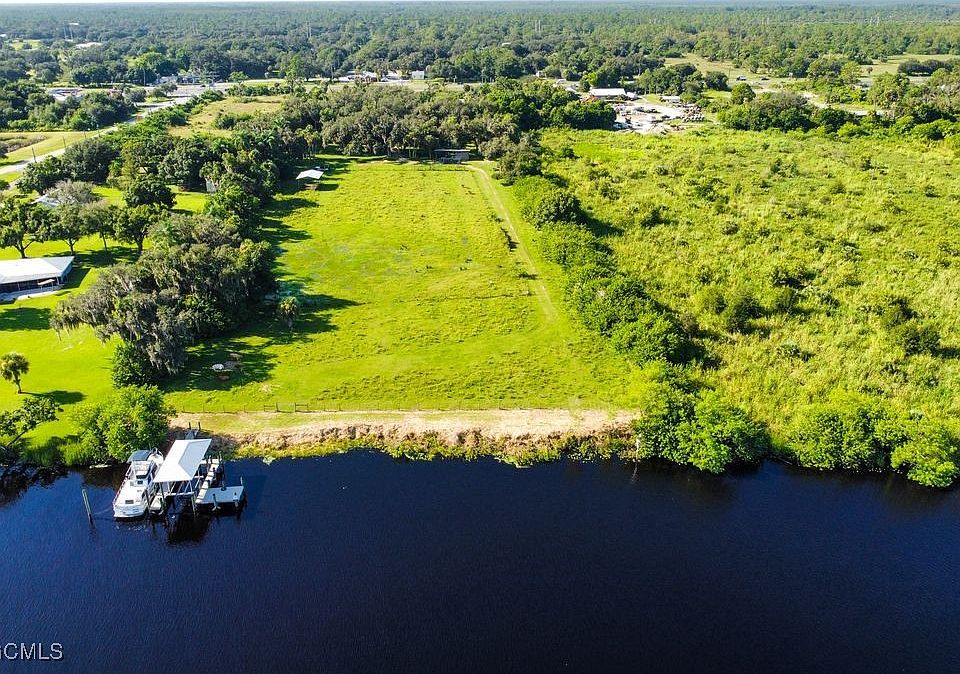 Alva Riverfront 8+ Acres on the Caloosahatchee Intracoastal waterway-Includes Large 4,000 SF barn house. Entire building has a Commercial HVAC & security system included. Barn has 2 Large 14 ft OH Commercial power doors. Polished concrete stained floors with natural real wood siding interior. Full kitchen that includes top grade granite counter tops with nice cabinets. Commercial Washer & dryer in seperate room. Large capacity dock and boat lift on the river that includes a metal house roof. Riverfront acreage is becoming a rare find. Located in the heart of Alva and the property can be used for several multi purpose uses. Wedding & event venue is allowed. 45 Ft Bus or Rv will store inside with 50 Amp hookup plug in ready. Many possibilites.