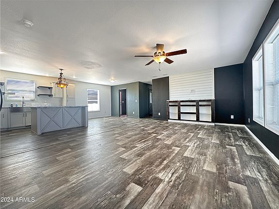 This remarkable, move-in-ready horse property sits on a spacious 1.5-acre lot with mountain views and is only three years old. Offering four bedrooms, two bathrooms, a large family room, and a versatile game or flex room, this home has ample space for everyone. Durable vinyl flooring runs throughout, adding style and easy maintenance. The kitchen features elegant white cabinetry, a generous island, and upgraded black appliances.