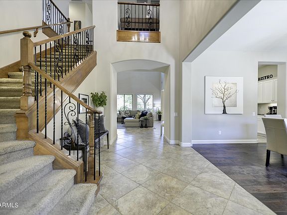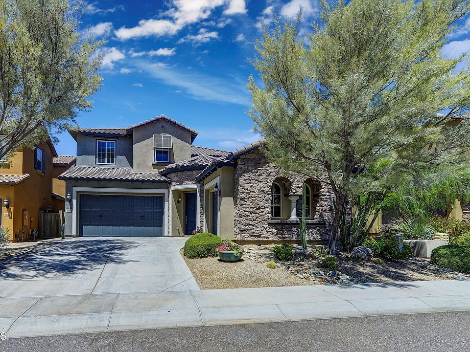 Fireside at Desert Ridge family resort style living! Beautifully updated home notably features two master suites, one on main level, gourmet kitchen with white staggered cabinets, granite counters, island seating, 5-burner gas cooktop, double wall ovens, with built-in refrigerator and walk-in pantry; custom paint (2019), new water heater (2019), updated fixtures and remodeled outdoor living space. Spacious w/soaring ceilings, the main living area opens to kitchen, flows thru butler pantry to formal dining and out to private interior courtyard w/gas fireplace. Fireside amenities include clubhouse, fitness center, (2) pools, (2) spas, splash pad, tennis/sport courts w/Desert Ridge shopping/dining close by. Fantastic schools. Come experience this wonderful community and all it has to offer!