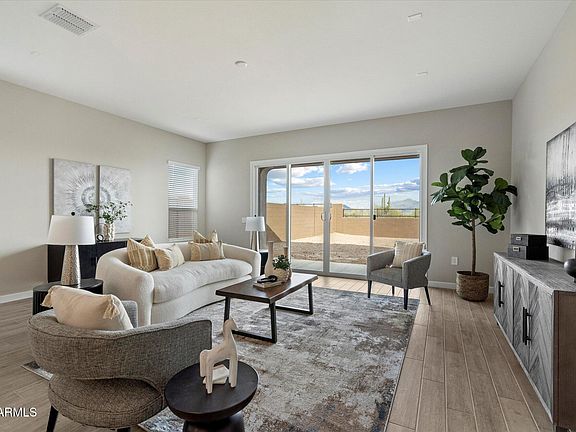 One of the best lots in Talinn, perfectly positioned along the eastern border with breathtaking McDowell Mountain views. This brand-new, never-lived-in DR Horton home features an open-concept floor plan backing to serene open space. Wake up to spectacular sunrises from your back patio, with nature as your backdrop. Thoughtfully upgraded, this home includes a 12x8 patio door, pre-wiring for surround sound, an upgraded electrical package, plank tile flooring throughout, elevated bath vanities, and 2'' faux blind window coverings. Every interior detail has been tastefully selected—now it's your turn to bring your vision to life in the backyard. This builder is completely sold out in this sought-after community, making this an exclusive opportunity to to own a new home on this exceptional lot!