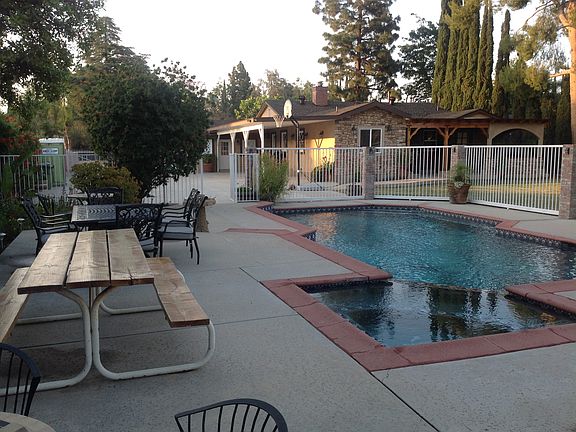 ATTENTION Agents: If you have a buyer that has a home based business this maybe the best property ever offered on the Market. Recently Reduced $250,000. Electronically Gated Estate w/Security and circular drive,Parking for numerous cars. Remodeled Gorgeous home, expanded w/Master suite.Plus Granite Counter Kitchen Built ins, bkfst area, formal Dining Rm, Family Rm w/wet bar opens to covered patio.Plus Two detached Brand new buildings, 1200 s.f. with bedroom & Bath, Vaulted Ceilings Open floor Plan Central Air & Heat. 400 s.f detached office, brand new detached 3 car garage. Beautiful fenced pool, spa & BBQ Area. Lush lawn with fruit trees. Paved parking to the back of home with dble att carport room to park 10 cars. Lots of Potential for Multi Family Living. Don't miss showing this home. Also for lease at $6450 per month.