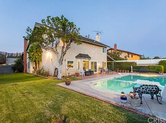First time on the market in over 40 years - lovingly cared for by its original owners!!!! Tennis court estate on a quiet culdesac located in the highly sought after Heritage Estates. Fantastic floorpan offers; double door entry, spacious sunny living room with vaulted ceiling, family room with it's own fireplace and wet bar, formal dining room offering a convenient pass-through entry to the open kitchen with brick flooring, breakfast counter and eating area. Additionally the floorpan offers a bedroom on the first floor with it's own bath (with a separate entrance and could be guest quarters, private office or hobby room). Also, there is four large bedrooms upstairs with ample closets & storage space including an expansive master suite that has a vaulted ceiling, sitting/dressing area & huge attached bath w/a sunken tub and separate shower. Entertainers backyard includes a sparkling pool/spa, patio area, private tennis court, BBQ, grassy areas, and a doggie run. This prime location has equestrian trails, hiking trails, rock climbing, parklands and the "Vineyards" a premier dining, shopping and entertainment center in nearby Porter Ranch. Truly a must see!!!
