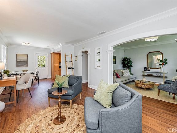Modern Traditional South of the Blvd. and across the street from the Woodland Hills Country Club! Perfect starter or forever home, single level 952 square feet, two bedroom, one bathroom. Open plan living room and den flow to a bright kitchen with dining area and patio access. Immaculate and light-filled with stand-out features including crown and base molding, moisture-resistant vinyl plank flooring, and an exquisite bathroom with elegant vanity and tub/shower. Detached two-car garage/flex space ideal for ADU, home office, gym or bonus room of your dreams! The outdoor entertainment area offers a spacious sun-kissed stone patio and lush landscape that invite al fresco dining and lawn games! Ready for you with new paint, paver driveway, upgraded main panel, and copper piping.