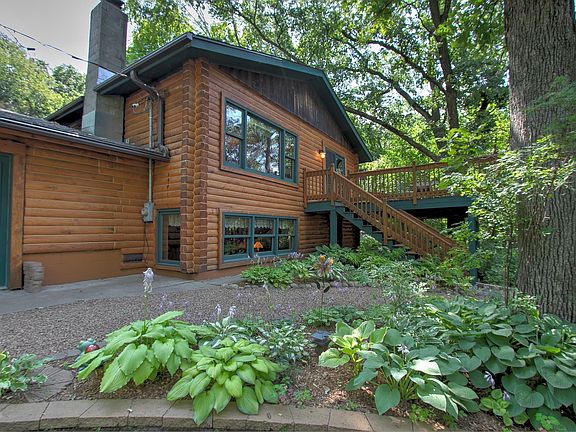 A nature lovers dream! You'll have serene views as the driveway winds back through 40 wooded acres until an opening showcases this beautiful log home that has had one owner! Stepping inside you'll be greeted by rustic woodwork & the stunning stone accent wall. Open concept & vaulted ceilings flow nicely into the updated kitchen with knotty alder cabinets, granite countertops complete w/ convenient organizing drawers/pull outs. Walk right out to the expansive deck, listen to the quiet and soothing sounds of nature that envelops you. Upper level primary bedroom has perfect natural light w/ walk thru to bathroom. In lower level, beautiful stone wood burning fireplace is the focal point in the large family room with two other bedrooms. Home has both gas & wood furnace for those cold winter months. Home has Leaf Guard Gutters. 24x32 Pole building w/ cement floors & electricity has an abundance of storage space for all your wheelers, mower & more!