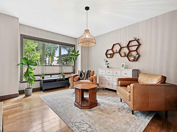 ***Brand new roof*** Exception value in this beautiful attached home in the heart of North Glenmore Park! Step inside and discover a bright, open-concept floor plan accented by gleaming hardwood floors, elegant wrought iron railings, and soaring vaulted ceilings. The main level is anchored by a chef-inspired kitchen, featuring a two-tiered island, granite countertops, stylish tile backsplash, corner pantry, and stainless steel appliances—including a gas range. A spacious dining area seamlessly connects to the kitchen, creating the perfect space for entertaining. The inviting family room showcases a dramatic two-storey stone feature wall with a gas fireplace and custom built-ins, separating it from the versatile front flex room—ideal as a home office or additional living space. A rare highlight is the professionally designed 10' x 10' mudroom, complete with built-in storage and a sliding barn door. Unique dual staircases lead to the upper level, offering privacy and convenience. One staircase leads to the luxurious primary retreat with a walk-in closet and spa-inspired ensuite featuring a tiled shower and jetted tub. The second staircase leads to two additional bedrooms and a full main bathroom. The fully finished basement expands your living space with a large recreation room, fourth bedroom, full bathroom, laundry, and ample storage. Enjoy the landscaped backyard, complete with an interlocking stone patio, storage shed and a detached double garage. Located just minutes from Sandy Beach, Marda Loop, Glenmore Reservoir pathways and downtown, this exceptional home offers the perfect blend of tranquility and urban convenience. Don't miss your chance to view this one-of-a-kind home. Book your showing today!