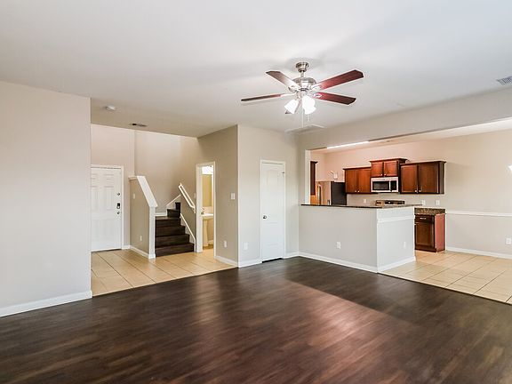 Please note, our homes are available on a first-come, first-serve basis and are not reserved until the lease is signed by all applicants and security deposits are collected. This home features Progress Smart Home - Progress Residential's smart home app, which allows you to control the home securely from any of your devices. Want to tour on your own? Click the "Self Tour" button on this home's RentProgress. This four-bedroom Rosenberg rental home delights with an attractive multitone brick exterior and a practical open plan inside. The living room's laminate flooring and overhead fan offer style and comfort. In the dining room, the gleaming tiled floor and bright chandelier create a welcoming environment for meals with friends. Quickly choose ingredients for dinner from the kitchen's walk-in pantry, and cook them with modern stainless-steel appliances. In the first-floor main bedroom, a bay window diffuses natural light. Relax in the en suite bathroom's garden tub, or take a refreshing shower. Make the most of the large walk-in closet. The expansive patio in the fenced backyard is an ideal spot for a barbecue. Call today for a tour.