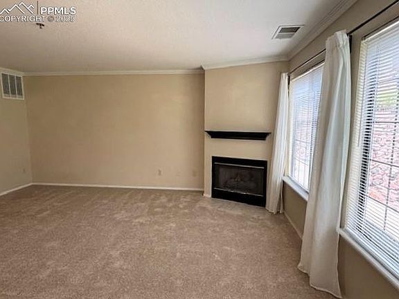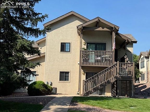 Welcome to this beautiful, sunny, cheerful, main level unit that is waiting just for YOU in the desirable Arbors at Mountain Shadows Community! This charming end unit has a wide open, easy accessible floor plan, is in GREAT condition throughout, has brand New carpet, a brand New stove, a gas fireplace, a generous sized, full bathroom, lots of windows for brightness, lots of storage & all of the appliances stay - including that new stove, fridge, dishwasher, microwave, washer & dryer. Thoughtful, tasteful touches are throughout this comfortable home - decorative lighting with ceiling fans, crown molding, central A/C, 2-tone cabinets in the kitchen, built-in storage & shelves in the living room, grab bars in the bathroom, lots of storage in the bathroom vanity, a roomy, separate storage closet near the laundry area & neutral window coverings throughout the home. The unit comes with an attached, oversized garage with plenty of storage & a cozy covered patio where you can enjoy your coffee or tea to greet the day or a glass of wine in the evening. The unit is located in a well maintained, quiet community nestled in the foothills on the northwest side of town. This popular, well landscaped complex includes a sparkling, outdoor pool with a hot tub, a fitness center & clubhouse with plenty of guest parking close by. Your HOA fees cover community landscaping, all kinds of fun community amenities, trash, snow removal & more in a community where the HOA is managed by the residents. Convenient to the Foothills & Blodgett Peak Open Spaces & Trails with easy access to Garden of the Gods, Rockrimmon, Peregrine & I-25 is just minutes away. You are also close to shopping & some great area restaurants. This low maintenance, peaceful unit is perfect for 1st time home buyers or for anyone wanting a comfortable, convenient lifestyle. Schedule a look today & Welcome Home!