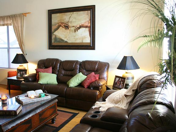 Gigantic price reduction!! Fantastic buy! This is a beautiful well-loved & well- maintained home tucked into a quiet secluded area surrounded by mountains.Tile roof wonderful floorplan light bright & cheerful gem! Big island kitchen w/Corian-type counters bay window breakfast nook & family room has been repurposed as a gorgeous formal dining room. Very spacious master bedroom with walk-in closet & master bath has separate shower garden tub & double sinks. 3 bedrooms PLUS a wonderful loft area that is currently used as a TV room.A/C replaced in 2012 RV gate sparkling pool nice covered party patio w/ extra mexican tiled patio area.Nice size laundry room with built-in storage great use of designer colors & paint nice laminate wood flooring too. What a charming home!Don't miss!
