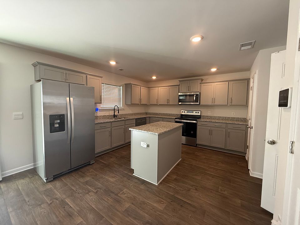 Inside, you'll find a bright, open floor plan with stainless steel appliances, granite countertops, and a washer and dryer included for your convenience. The primary suite offers a walk-in closet, double vanity, and a linen closet, while each additional bedroom provides generous space and closet storage.
