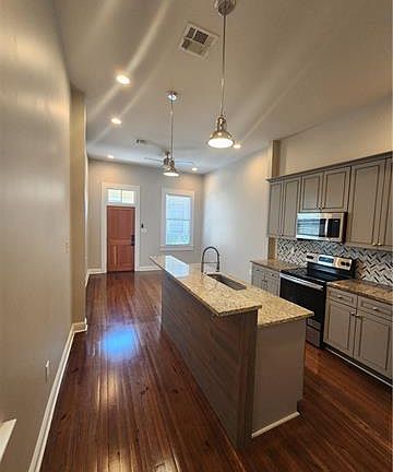 Stackable washer and dryerNewly renovated kitchenLarge bedroom closetWood floorsHigh ceilings