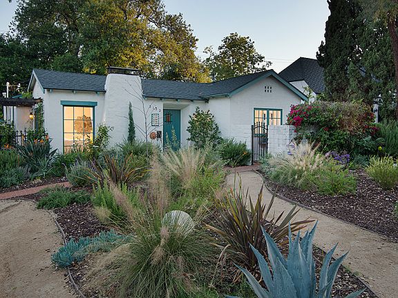 Situated in an updated garden setting perfectly planted and designed to emphasize the architectural qualities of the house itself... both inside and out the buyer is enticed by vintage charm. Walk into the broad spacious living room with its high barrel-style ceiling, mellow wood floors, built-in nooks, fireplace, French doors to an outside patio which begins the journey. Adjoining the living room are two large bedrooms, and the family dining room and breakfast bar which opens to a well-planned newer kitchen featuring top-of-the-line appliances (which stay). Accommodating today's lifestyle need for comfort- we have a large family room across the back of the house and a private rear bedroom. The grassy, shady rear yard with its magnificent California oak tree and inviting trellis patio. Picture happy times and good living.