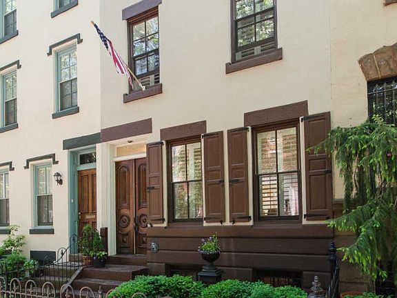 Beautiful home on one of the most desired blocks in Philadelphia. Wide sidewalks and front gardens distinguish the 2100 block of Green Street. 4 large bedrooms, 3.5 baths with PARKING, and a large DECK off the kitchen. The first floor features a glass-enclosed foyer, a spacious living room with a wood-burning fireplace, a powder room, oak floors with double wedding band trim, true cooks kitchen with granite countertops, stainless appliances, sunny dining area with glass sliding doors to South facing deck. The open central stairway lit by a skylight with custom millwork brings light into the house all day long. The second floor has two spacious bedrooms each with their bath. The rear bath has a large vanity and bathtub with a tiled tub/shower enclosure and the front bath is en-suite with an oversized stall shower with bench, marble floor, and marble vanity top. The third floor has a front bedroom with a gas burning fireplace, many closets, laundry, an en-suite bath with stall shower, and marble top vanity. The bedroom to the rear of the home is large, and makes for a great office or bedroom! Wood floors throughout, 2-zone HVAC, and 1 car garage parking. Fantastic location on prime Spring Garden historic block close the museums, restaurants, shopping, Whole Foods, Target, Fairmount Park, Kelly Drive, and all Center City has to offer.