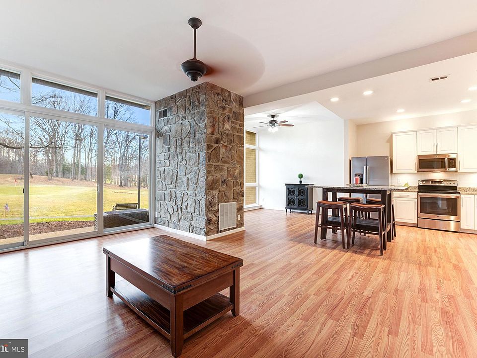 Reston living at it's very best! Enjoy the priceless views, amazing location, and completely updated home! The minute you walk-in you are drawn to the amazing and vast views! Located on the 5th hole of Reston National Golf Course. The dramatic walls of windows brings in loads of natural light as well as abounding beauty of nature. Move-in ready. Kitchen renovated with gorgeous white cabinets with soft close doors, stainless steel appliances, and over and under cabinet lighting. The white subway tile backsplash and granite counter tops complete this clean and crisp yet elegant kitchen. The owner added the smartly designed huge island for dining and socializing. This home has a great flow with the open floorplan and 9 ft. high ceilings. The owner got rid of the annoying popcorn ceilings and added recessed lights in the kitchen. All of the flooring has been replaced with attractive and durable LVP. Entertain or just relax and enjoy the sights and sounds of nature on your back patio. The grill conveys! On the upper level is the primary suite, second bedroom, updated hall bath, and laundry with Samsung washer and dryer (2019). The primary suite includes the renovated bath with walk-in shower. It also has a large walk-in closet. The second bedroom could also be used as an office. It also has a large closet and ceiling fan . The hall bath has also been perfectly renovated as well. All of the windows and sliding door were replaced 5 years ago at a cost of $11,000. There is loads of storage in this condo. The superb condition of this home cannot be over stated. Location, location, location....located on Reston National golf course, walk to the lakes and inn the serene woods on Reston's over 55 miles of trails. Close to South Lakes Shopping Center, the Wiehle Metro, Walker Nature Center, the NEW Wegmans, pools, parks, tennis, and so much more! Hurry this home, the views, the location are AMAZING!