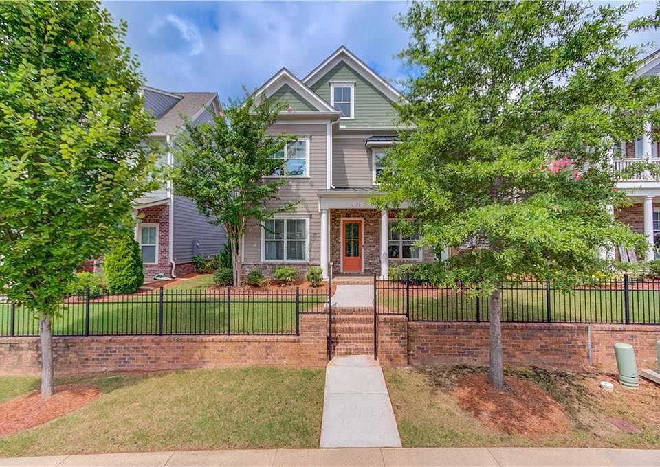 Welcome to The Enclave at Stonehaven, a beautiful gated swim/tennis community with prime location to I-85, shopping, dining, and more. This 4 bedroom, 3 bath home features an additional 1 bedroom, 1 bath carriage house. This bright, open concept home features 10 foot ceilings and wide planked hardwood floors throughout the main level and owners suite. On the main level, you'll find a generous sized bedroom & full bath, plus a flex room that could be used as an office, play room, or additional living space The high end chef's kitchen features quartz countertops, large island, gas range, separate eat-in/sitting area, as well as a wet bar complete with a wine fridge. The kitchen is open to the great room that offers high ceilings, built in bookshelves & gas fireplace. Off the kitchen, you have a screened in porch that leads to the oversized rear entry garage. The second level features the primary suite, with oversized shower, separate soaking tub, and large walk-in closet that connects to the laundry room for maximum convenience. Two additional guest bedrooms and a full bathroom with double vanities on the second level. Check out the carriage house over the detached garage- featuring a large living space plus full bathroom and closet- making it the perfect spot for guests, home gym, office, or in-law suite. You can't beat the location and convenience of this neighborhood- just minutes from the interstate, Gas South Arena, and all the dining options you could want!