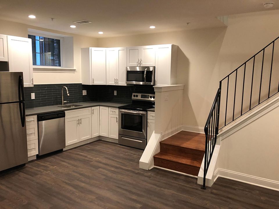 New Construction located in the heart of Rittenhouse . This one bedroom 1.5 Bath bi-level apartment is decked out with modern finishes in a beautiful historic building 2 blocks from Rittenhouse Square. New wood floor throughout, beautiful kitchen with stainless steel full size appliances, gray quartz counter tops over white cabinetry with tile back splash. The bathroom is outfitted with frame-less glass door and white subway tile with glass accents, spacious vanities and med cabinets. The unit has central heating and air, in unit washer dryer , full size hot water heater, and intercom system, and large entrance/ foyer, walk in closet, bulk storage. The entrance to the building has a grand fire place and lots of refurbished stained class and beautiful woodwork. **also have a standard one bedroom in this building for $1675.00 Utilities are not included. First last and security deposit.