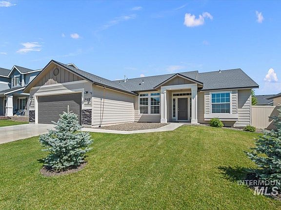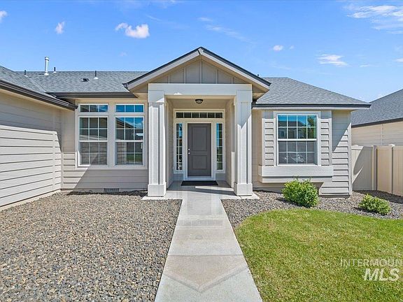 Better than new, single-level home in Star! This split bedroom residence offers 3 bedrooms and a secondary living space that could be used an an office, and has been gracefully lived in. Interior boasts high ceilings in the main living space, large open floor plan, beautiful leathered granite in the kitchen and lots of storage. The split-bedroom layout ensures privacy, with the master suite featuring a walk-in closet and a luxurious en-suite bathroom with solid surface counters and tumbled marble backsplash. Step outside to the recently re-landscaped east-facing backyard with an oversized patio, perfect for entertaining.