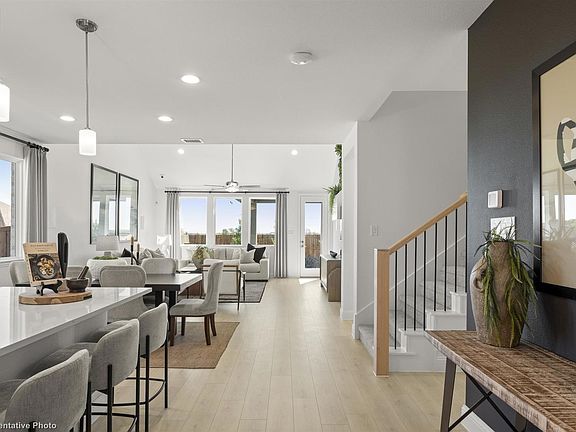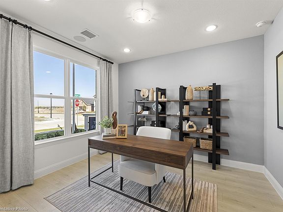 MLS# 21096992 - Built by RockWell Homes - Nov 2025 completion! ~ The new two-story home offers a spacious and versatile design, featuring 5 bedrooms, 4 bathrooms, along with a dining room, home office, gameroom, and a 2-car garage. The exterior showcases full brick, complemented by a covered porch and dual-pane energy-efficient windows. Inside, the open-concept layout places the living, kitchen, and dining areas at the back of the home, with the kitchen boasting an island with bar stool seating, solid surface countertops, stainless steel appliances, range, dishwasher, microwave, ceramic tile backsplash, 42-inch cabinets, Delta faucet, recessed can lighting and a walk-in pantry. The living area is bathed in natural light from multiple dual-pane windows. The primary suite, conveniently located on the first floor, features a garden tub, ceramic tile shower with glass enclosure, dual sink vanity, walk-in closet, and upscale Delta faucets. A guest suite is also on the main floor with a full bathroom. Upstairs, secondary bedrooms all include walk-in closets, and the secondary bathrooms offer ceramic tile flooring and tub-shower surround. Additional highlights include a full sprinkler system, landscaping package, full gutters, garage door opener, ceramic tile utility area, vaulted ceilings, fully fenced in private back yard and a new home warranty.