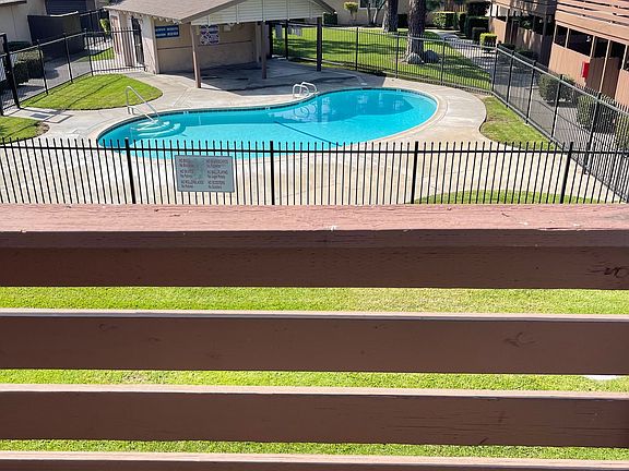 Small fenced patioRecessed lightingElectric stovePool on property groundsLaundry roomLaminate wood flooring