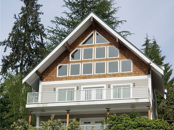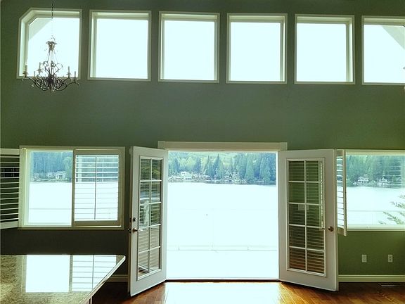 100ft of Waterfront! 2007 Custom-built home commanding views from all levels. Home features soaring ceilings, beautiful wideplank hardwoods, radiant floor heat, AC, European kitchen w/slab granite & stainless appliances. Master w/fireplace, 5-piece bath w/heated towel racks. Large loft/second bedroom. Spoil & guests w/2 decks, 2 docks, Boat house & a stretch of lawn for outdoor BBQ's. Separate Oversized++ garage, shop area and loft. Carport, parking for 7+ cars. Live the Waterfront lifestyle!