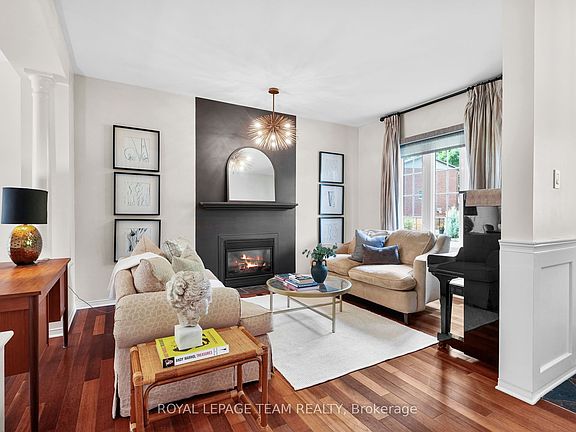 Discover this approximately 2,200 square foot residence perfectly situated in one of the city's most desirable neighbourhoods. Steps from the Ottawa River, Kichi Zibi Mikan Parkway, and scenic trails, this home offers an unbeatable lifestyle. Walk or bike to Westboro and Britannia Beach, or reach downtown in just 15 minutes. Sherbourne O-Train station only 200 metres away and easy access to the Queensway, commuting couldn't be simpler. Main features, 4 bedrooms, 2.5 bathrooms, 9 ft. smooth ceilings on the main floor with open-concept design. Hardwood flooring throughout (Kempas exotic) with slate tile accents. Gas fireplace, oversized windows, and a large porch for natural light and charm. Gourmet kitchen with quartzite island, quartz counters, walk-in pantry with coffee counter, gas appliances, and deep prep sink and custom banquet seating. Main floor also offers a family room/den or home office. Expansive primary suite with cathedral ceiling, walk-in closet, and spa-like ensuite featuring a large tub and jet shower. Renovated main bath (2023) Convenient second-floor laundry room with sink and storage. Lower level with full 4-piece bath rough-in, offering endless customization options. Recently added patio, gazebo (2023), and fenced backyard (2023). Rarely offered, double-car garage with insulated door. Comfort furnace and AC (2023) freshly painted interior (2025) New carpet upstairs Aug, 2025). Gas hookups for stove, dryer, and BBQ. Perfect for families and professionals seeking space, style, and convenience in a prime location.Top-rated schools: Nepean HS, Broadview PS, Woodroffe PS, Our Lady of Fatima. Don't miss out on this home.