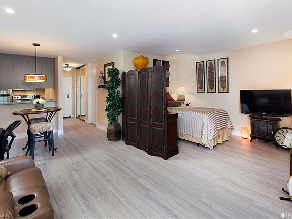 Why pay rent when you can own? Owner-occupant buyers should investigate FHA option. This newly renovated first floor studio has stylish upgrades & a wise use of space, providing plenty of room for living & dining. This warm & inviting unit boasts recent improvements: wide-plank engineered wood flooring, custom paint & elegant lighting. The efficient kitchen has granite countertops, newly installed cabinetry & stainless steel appliances. The bathroom has plenty of storage space & a spa-like deep jacuzzi tub; there is a generous walk-in closet w/custom shelving. The living area opens into spacious patio featuring a peaceful courtyard view of redwood trees & professional landscaping. The award-winning Shelter Creek condo complex has a serene setting w/trees, gardens, waterfalls & over 1.5 miles of walking paths. Enjoy the resort-style amenities: swimming pools, hot tub, tennis courts, fitness center. Covered parking for one vehicle and separate storage included. Easy commute location!