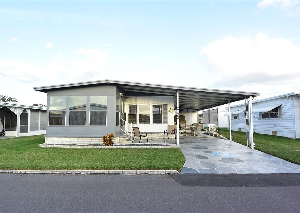 Welcome to beautiful Lake Conley Mobile Home Park in Holiday, Florida! This turnkey 2-bedroom, 2-bath doublewide is tastefully decorated and offers all the right updates to make your winter getaway or year-round Florida dream a reality. The home features an open-concept layout with an updated kitchen (2017), subfloors and laminate flooring (2018), HVAC system (2020), custom acrylic driveway (2022), new electrical panel (2023), new skirting (2024), and a freshly power washed & painted roof with a new vent (2025). Additional upgrades include a new dishwasher and mailbox (2025). Enjoy relaxing in the enclosed front porch with a lovely water view, plus a one-car carport and attached utility room for added convenience. Lake Conley is a beautiful lakefront, gated community offering a clubhouse, pool, shuffleboard courts, an active event calendar, community dock and boat ramp, and optional boat/RV storage (subject to availability for a fee)—all for a super low monthly fee. Conveniently located near the world-famous Tarpon Springs Sponge Docks and just 40 minutes to Tampa International Airport, this gem won’t last long—schedule your showing today and start living the Florida lifestyle you’ve been dreaming of!