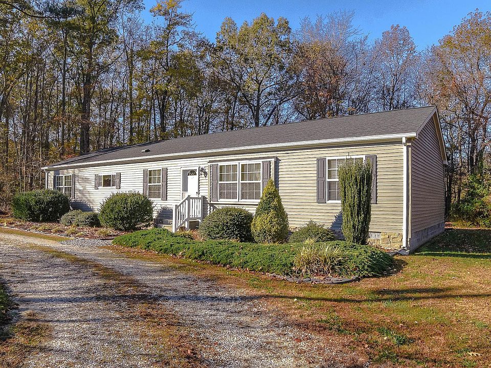 Nicest manufactured home on the market--built in 2006, with $77K worth of upgrades and a new well and septic installed at that time! Light and bright kitchen has oak cabinets and stainless appliances, island, and ceiling fan. KT is open to family room, which has a stone gas fireplace to warm up chilly winter evenings ahead. Separate dining & living rms, too, plus four BRS and two full baths. Primary BR is good-sized, with a huge walk-in closet and big master bath w/corner soaking tub and sep shower. Guest bath for the other 3 BRs has tub/shower and linen cabinets. Separate laundry room w/exit to back yard; nice washer/dryer convey! New roof 10/21, new HVAC 12/21, and Leaf Filter gutter guards in '17. Shed stays, too. All situated on 1.39 AC in the land of pleasant country living--come see!